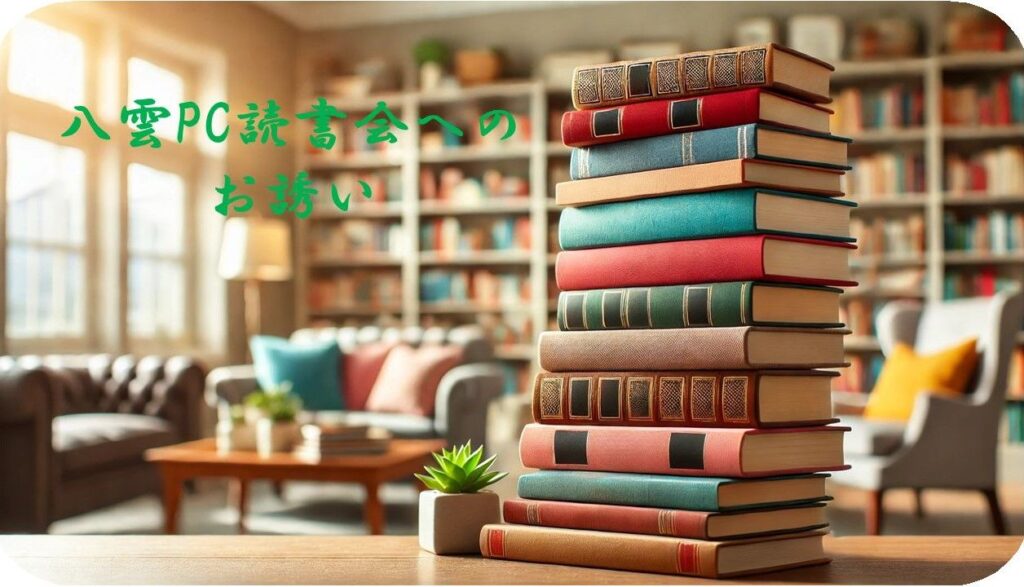 第1回八雲PC読書会(仮称)開催日時:2025年1月24日(金)13:00-15:00開催場所:八雲俱楽部出席者 :8名 八名がそれぞれ、読書歴や最近読んだ本、良かった本、思い出... -