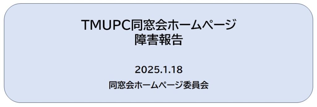 TMUPC同窓会ホームページ障害発生のお知らせ 2025.1.18