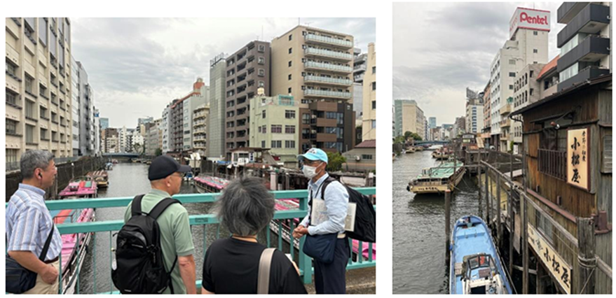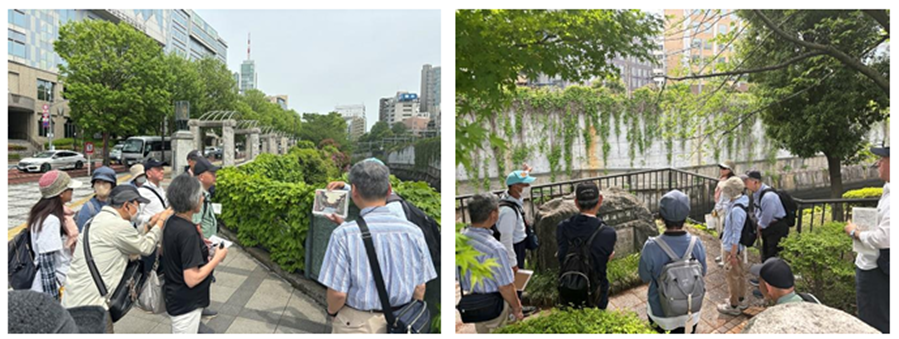 5回目は、スタート前に「神田上水掛樋(かけひ)」を描いた歌川広重の浮世絵と現在の「水道橋」を見比べました。神田上水を江戸城外堀の上に渡す橋(神田上水掛樋)と現在の水道橋の位置は微妙にずれていることを確認できました。
