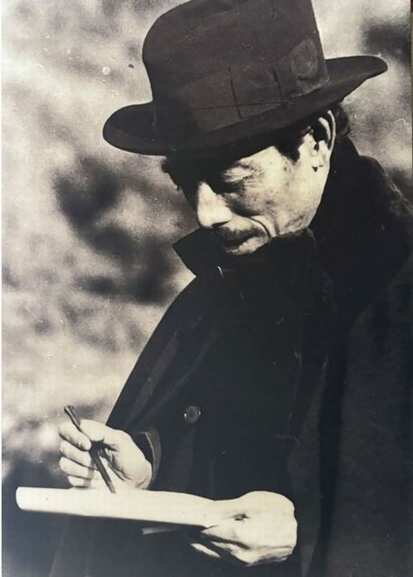 ガウンに身を包みスケッチするこの姿、実にダンディですね。ほんの20年前までは”ちょんまげ”姿の武士が闊歩していたはずなのに。水戸藩士の長男として生まれ、明治から昭和にかけて日本美術界を牽引した人物がこれほどモダンな装いだったとは驚きました。