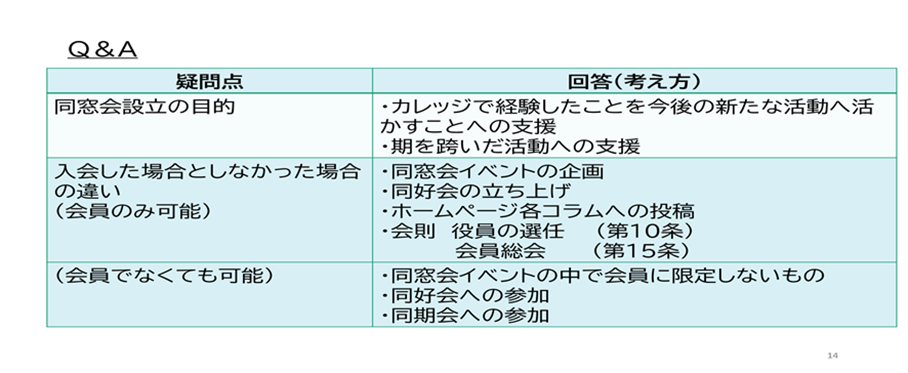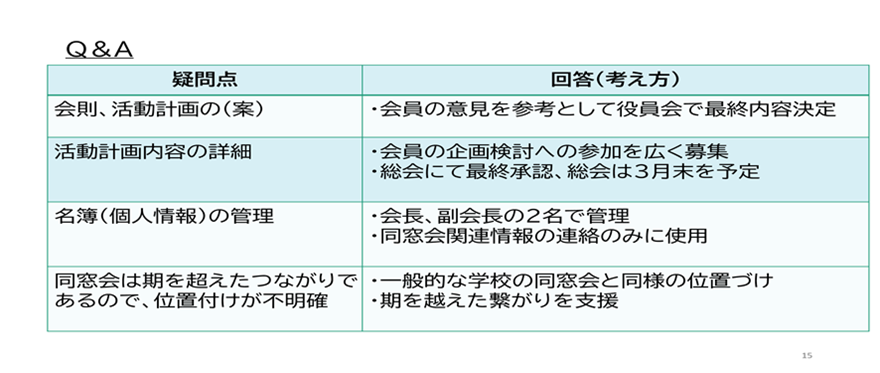 ※このQ&Aは同窓会発足に際しての事前説明会時(2022/03/4)のものです。