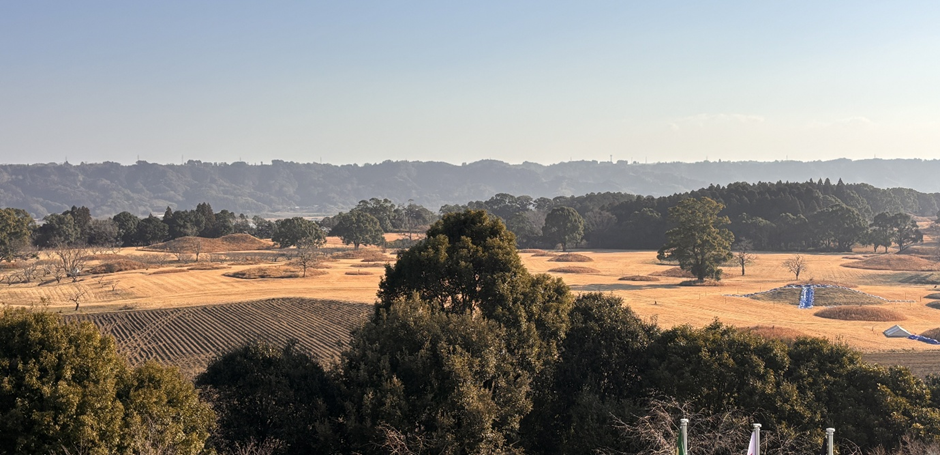 ~今も発掘が続く300を超える西都原古墳群 (博物館の食堂より撮影)~