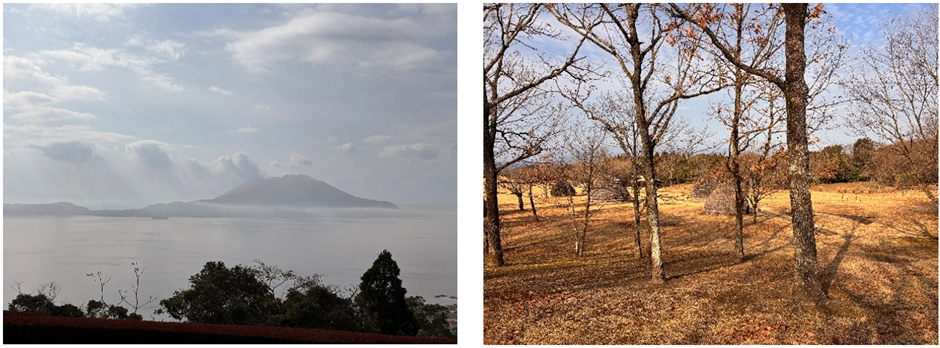 ~遺跡のすぐ近くに見える桜島~ ~広大な上野原縄文の森~